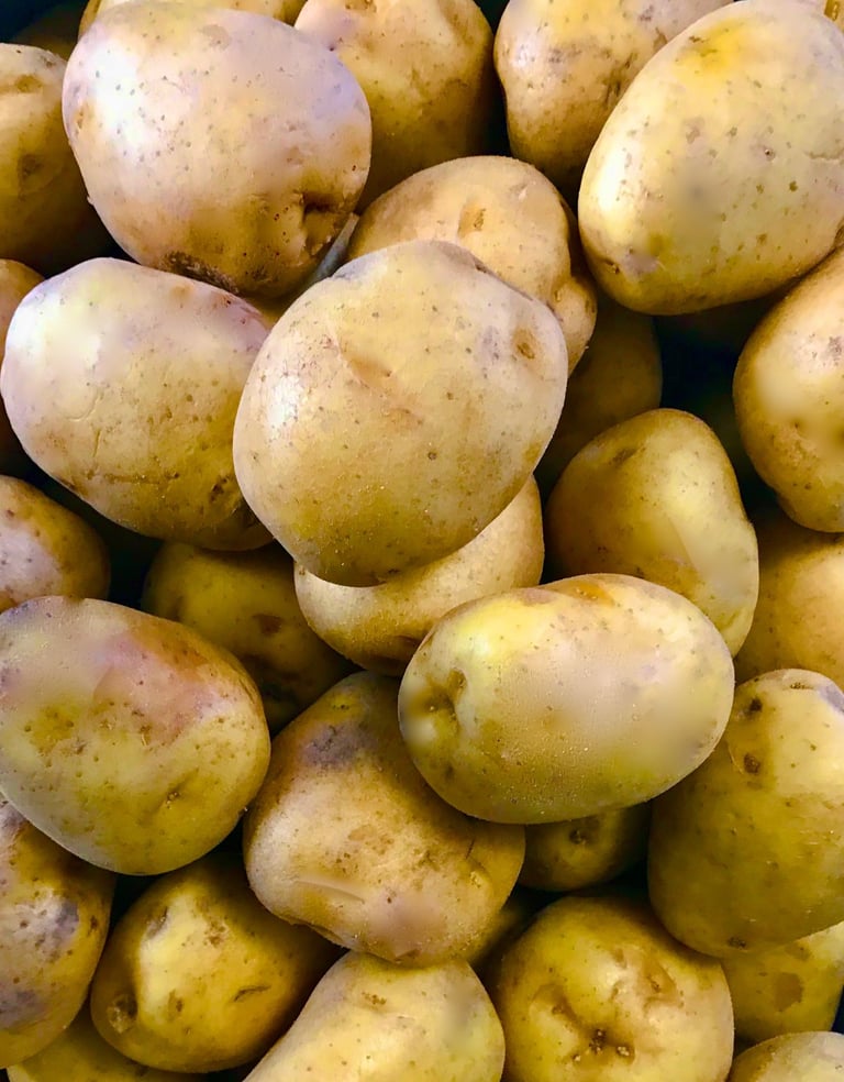 Our potatoes are sourced from Taber, Alberta, known for producing the finest Golden Yellow flesh potatoes. Hand-picked and cleaned by our close-knit friends at a local Hutterite Colony, they adhere to our rigorous standards of quality control. Each potato is carefully chosen for its ideal size and pristine quality.